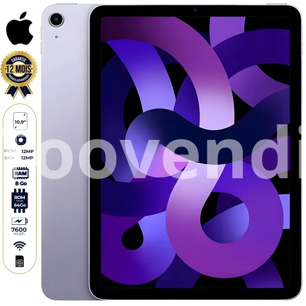 Apple iPad Air 5 (2022) - 64 Go - 8 Go RAM - 10,9'' - wifi + Cellulaire - Apple M1 - 12 MP/12 MP - 7600 mAh - Garantie 12 mois