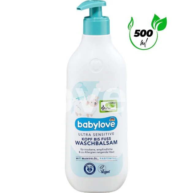 Baume lavant pour bébé de la tête aux pieds ultra sensible - Babylove - 500 ml