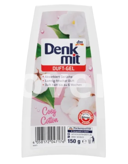 Denkmit Scented Gel Cosy Cotton absorbe les mauvaises odeurs et diffuse un parfum frais et velouté. Le parfum dure jusqu'à 6 semaines